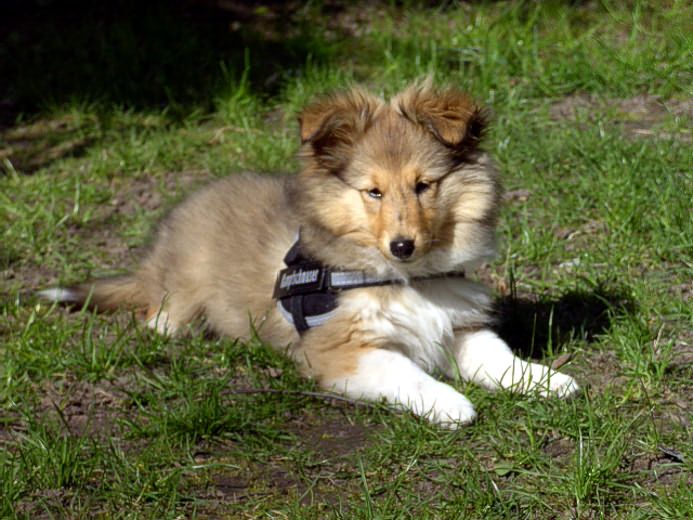 Golden Gucci, dark-zobel-weiße Hündin, im Alter von 2 Wochen